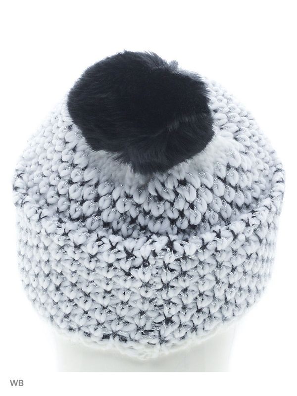 Шапка белая женская с помпоном.