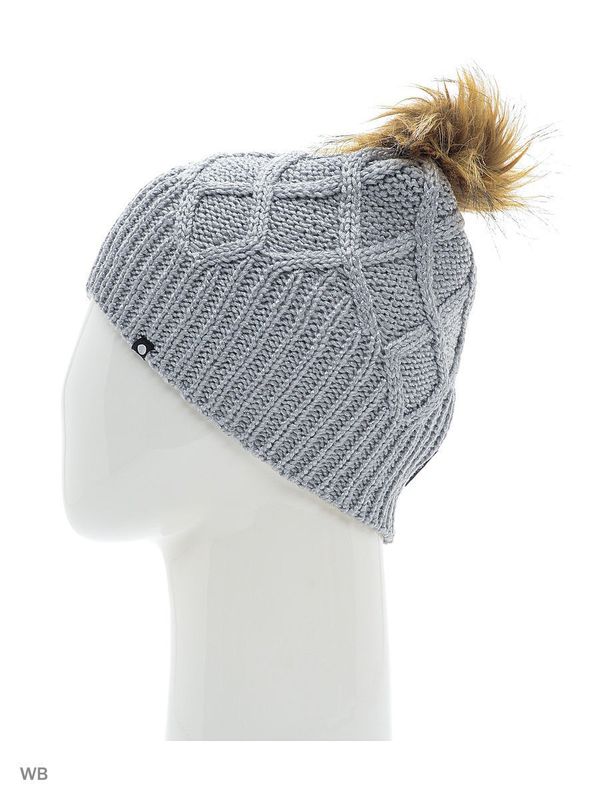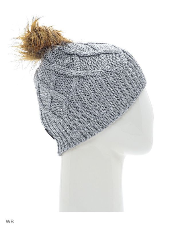 Шапка серая женская с помпоном.